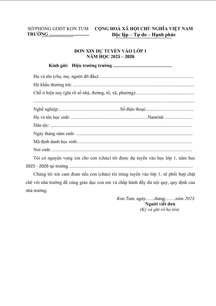BẤM VÀO ĐÂY ĐỂ TẢI VỀ MẪU ĐƠN XIN DỰ TUYỂN LỚP 1
