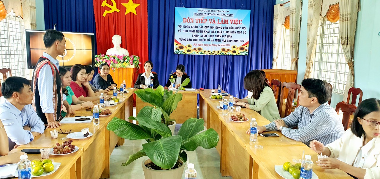 Ngày 24/11/2022 trường TH- THCS xã Đăk Ngọk đã vinh dự được đón tiếp và làm việc với Đoàn khảo sát của Hội đồng Dân tộc Quốc hội về tình hình triển khai, kết quả thực hiện một số chính sách GDĐT trên địa bàn vùng dân tộc thiểu số và miền núi tỉnh Kon Tum tại huyện Đăk Hà.