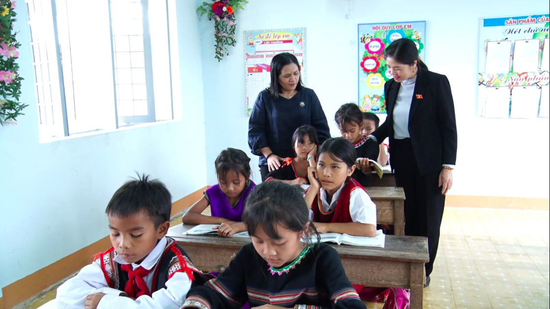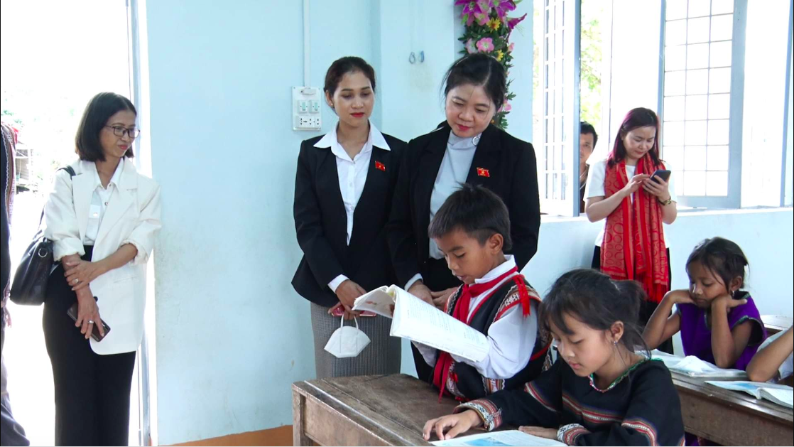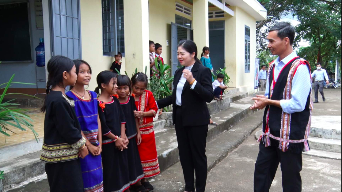 Đoàn khảo sát do Bà Leo Thị Lịch, Ủy viên Thường trực Hội đồng Dân tộc, Trưởng Đoàn, cùng với các thành viên: TS. Trần Thị Yên, Trưởng Ban Nghiên cứu Giáo dục Dân tộc, Viện khoa học Giáo dục Việt Nam; Bà Lỳ Ly Na, Chuyên viên chính Vụ Dân tộc, Văn phòng Quốc hội, thành viên; Ông Cầm Hoàng Mạnh, Chuyên viên Vụ Dân tộc, Văn phòng Quốc hội, thành viên cùng với đại biểu mời: Bà Nàng Xô Vi, Đại biểu Quốc hội tỉnh Kon Tum.