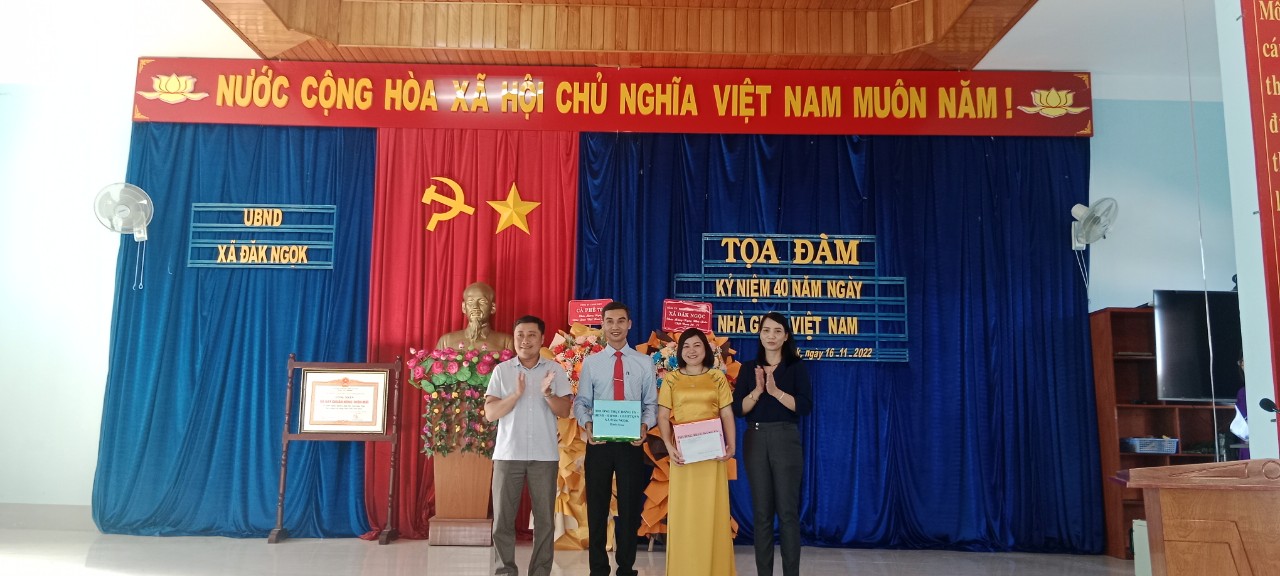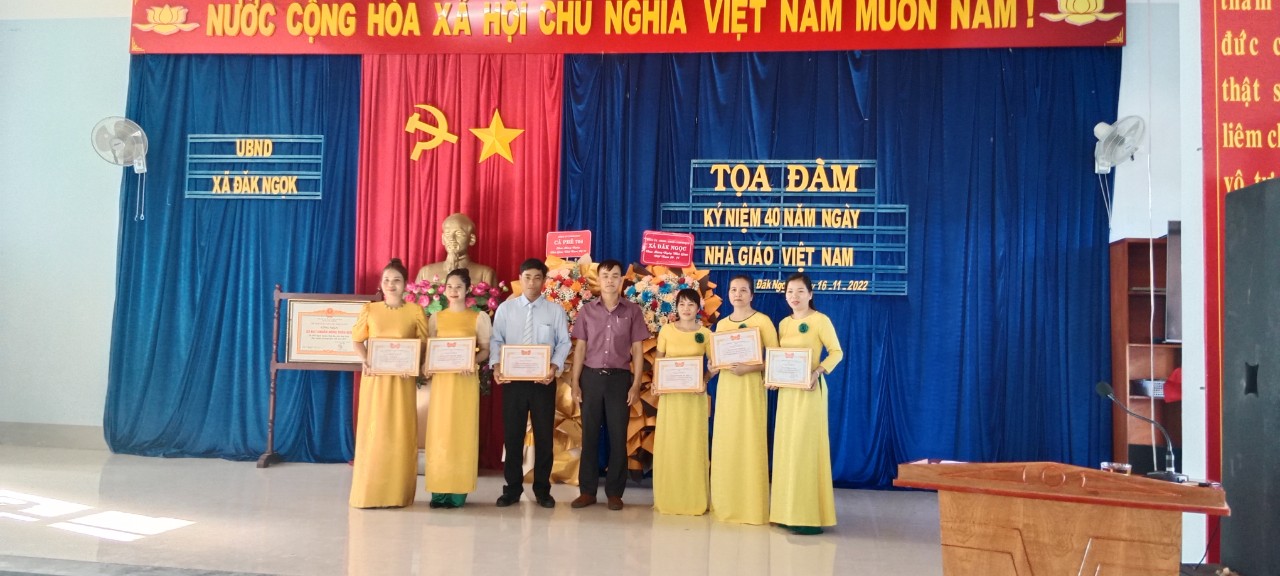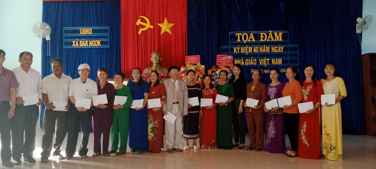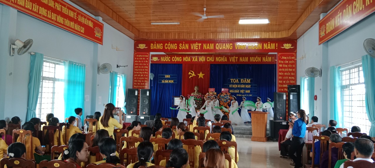 Tháng 11 lại về trong không khí hân hoan của cả nước hướng về ngày Nhà giáo Việt Nam 20/11, ngày mà cả xã hội tôn vinh và ghi nhận công lao to lớn của các Thầy, Cô giáo đã đóng góp cho sự nghiệp giáo dục. Hòa chung trong không khí đó, Thường trực Đảng ủy-HĐND-Lãnh đạo UBND-BTT UBMTTQVN xã tổ chức Lễ tọa đàm kỷ niệm 40 năm Ngày nhà giáo Việt Nam (20/11/1982-20/22/2022) nhằm ôn lại truyền thống tôn sư trọng đạo của dân tộc ta, đồng thời thể hiện sự quan tâm sâu sắc của cấp ủy Đảng, Chính quyền, các đoàn thể địa phương đối với các Thầy, Cô giáo đang sinh sồng và làm việc trên địa bàn xã Đăk Ngọk