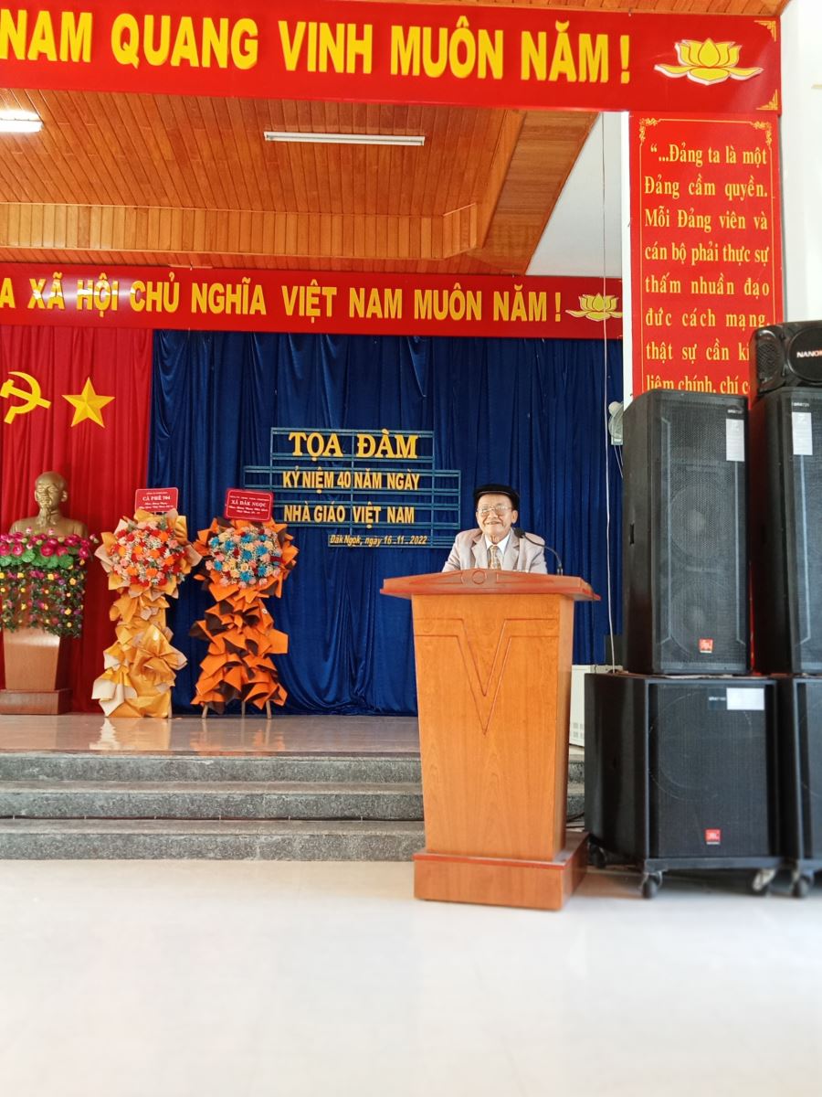 Về dự lễ tọa đàm có đồng chí Nguyễn Đức Ngọc-PBTTT-Chủ tịch HĐND xã thay mặt cho TTĐU xã đã phát biểu chúc mừng đến Quý Thầy, Cô giáo nhân kỷ niệm 40 năm Ngày Nhà giáo Việt Nam.